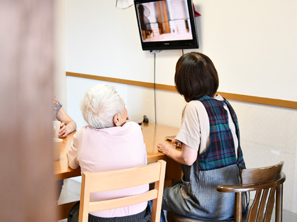 定期的な訪問看護ステーションからの健康チェックや24時間対応の提携医の訪問、外部訪問による音楽療法など、健康に明るく生活して頂ける様にしています。 少人数制のため、入居者様おひとりおひとりの変化にも気づきやすく、迅速に対応できるのも特長の一つです。